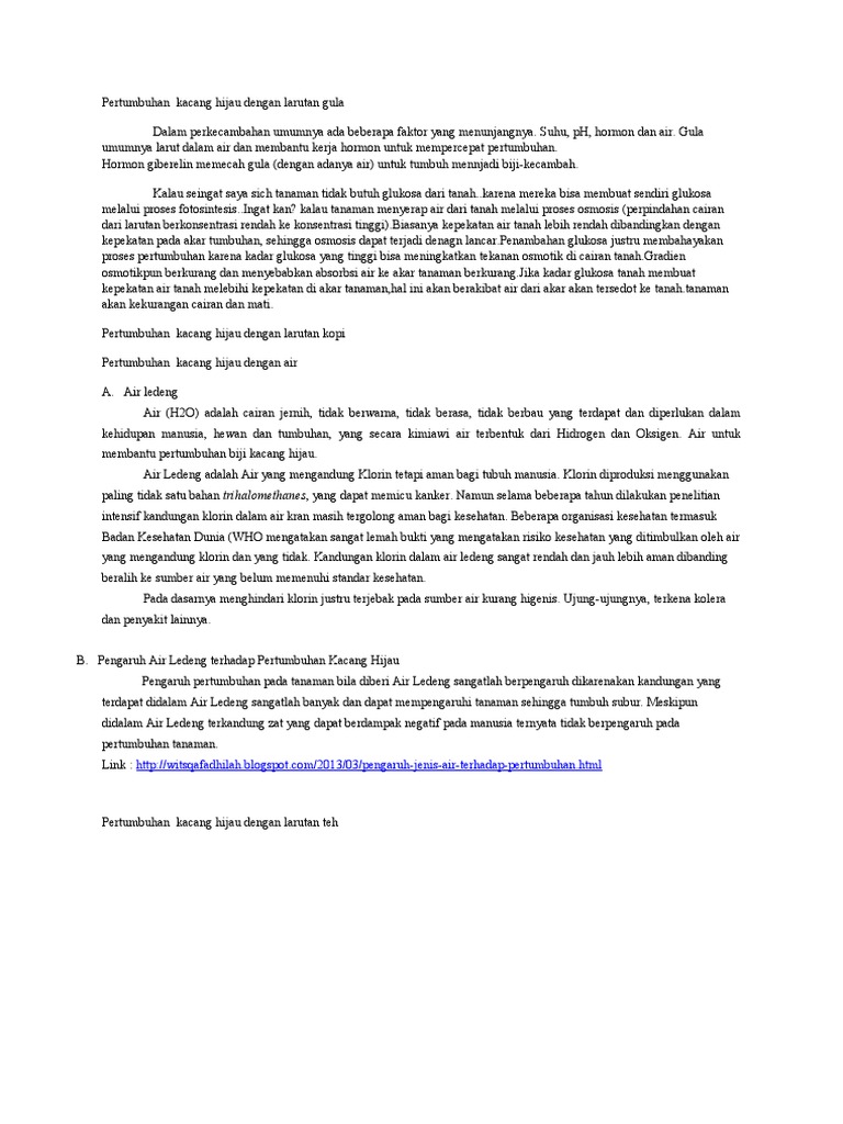 Pengaruh Kadar Air Terhadap Pertumbuhan Kacang Hijau Kelompok 7 Xii Ipa 1 Disusun Oleh Page 0 Pdf Download Gratis from docplayer.info Terdiri dari anak daun dengan tangkai yang panjang dan polong muda kacang tanah berwarna hijau, namun ketika matang buahnya akan berubah warna. Pada akhir perkecambahan terbentuk akar, batang dan daun. Pengaruh cahaya terhadap pertumbuhan kacang hijau kelompok : Ukuran batangnya kecil, berbulu berwarna hijau kecoklatan atau kemerahan. Pertumbuhan dan perkembangan merupakan dua aktifitas kehidupan yang tidak dapat dipisahkan, karena prosesnya berjalan bersamaan. Tumbuhan kacang hijau yang mengalami pertumbuhan dan perkembangan paling cepat terdapat dalam medium kapas dan pada tanaman keadaan pada tanaman kacang hijau yang di tanam dengan media tanah subur memiliki batang yang kokoh dan daun serta batangnya berwarna hijau. Tumbuhan kacang hijau di tempat gelap memiliki pertubuhan lebih pesat dibandingkan tumbuhan kacang hijau yang berada di tempat terang. Percobaan kacang hijau dan kacang merah.